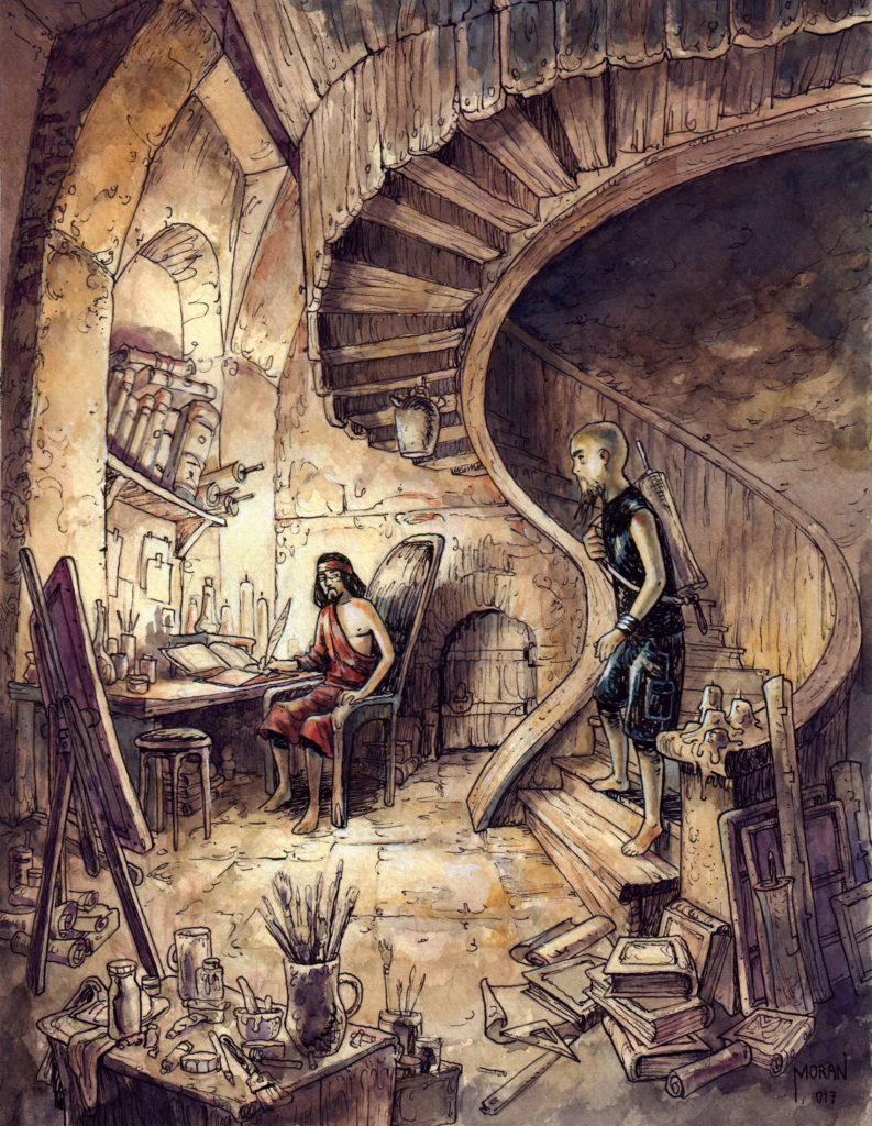 Durante el proceso artístico, he trabajado la acuarela, la tinta china y el gouache.