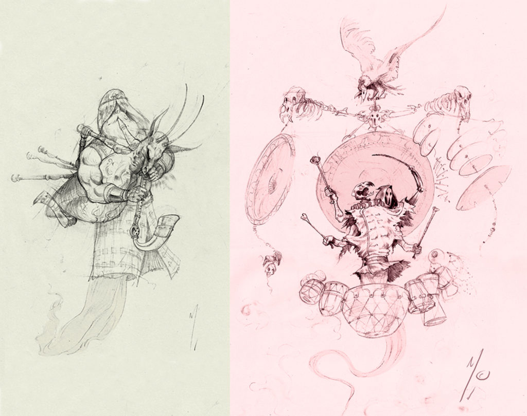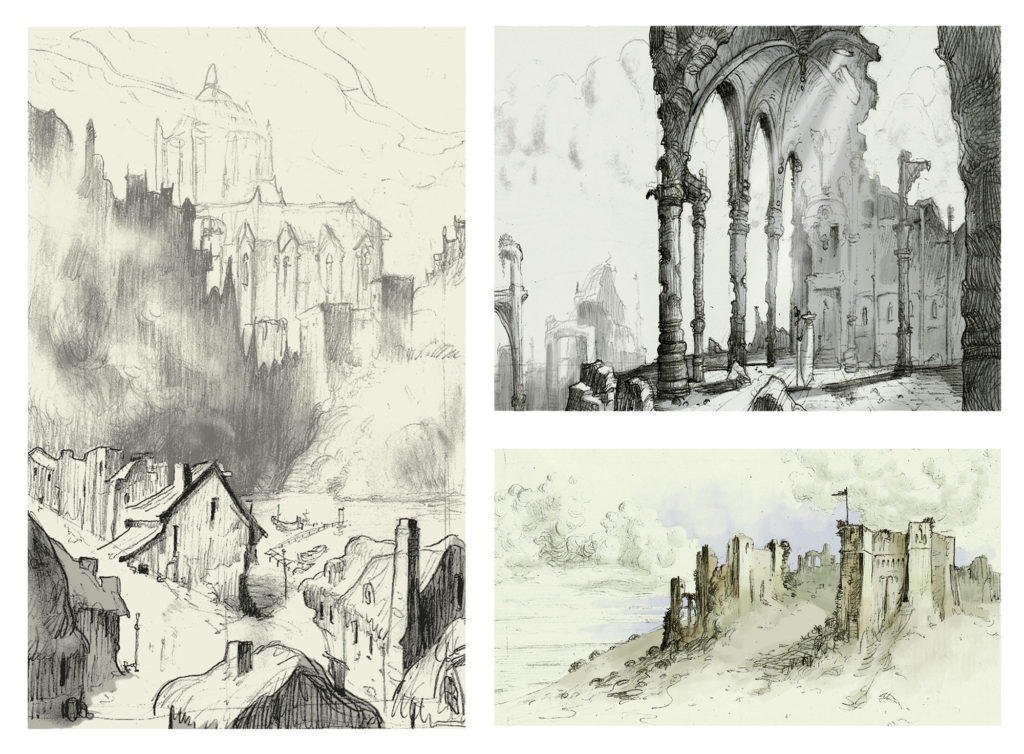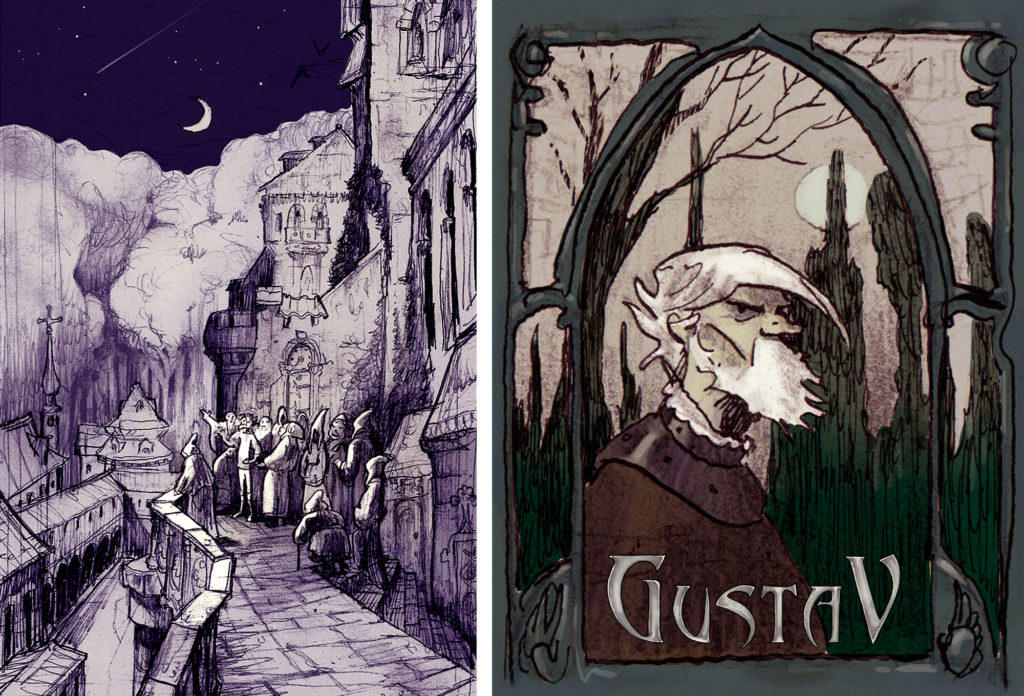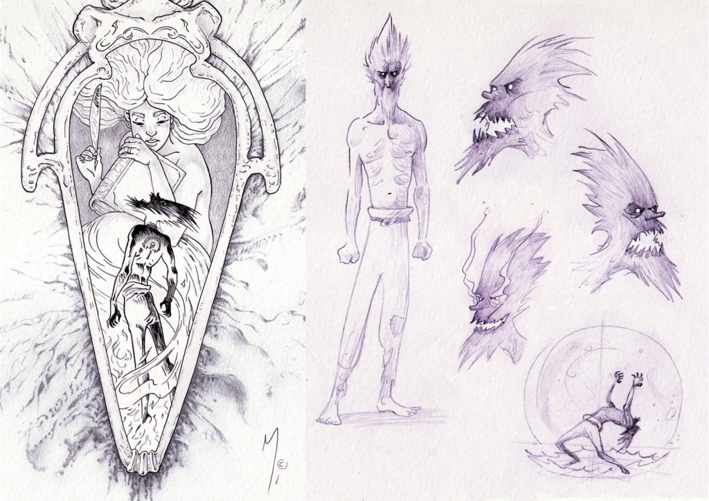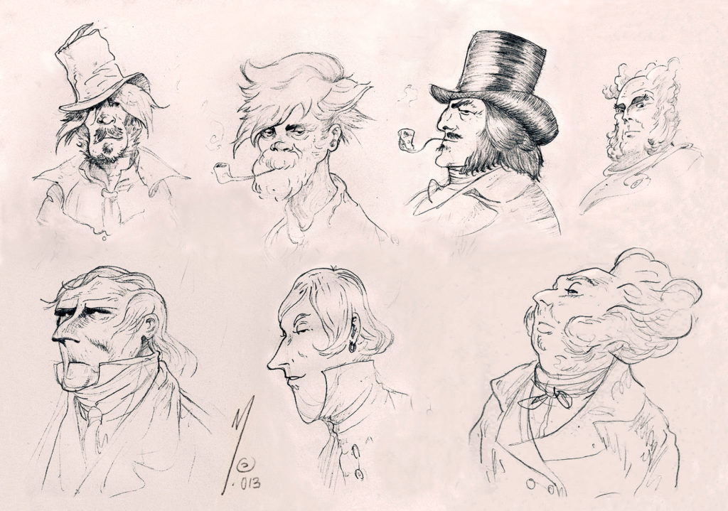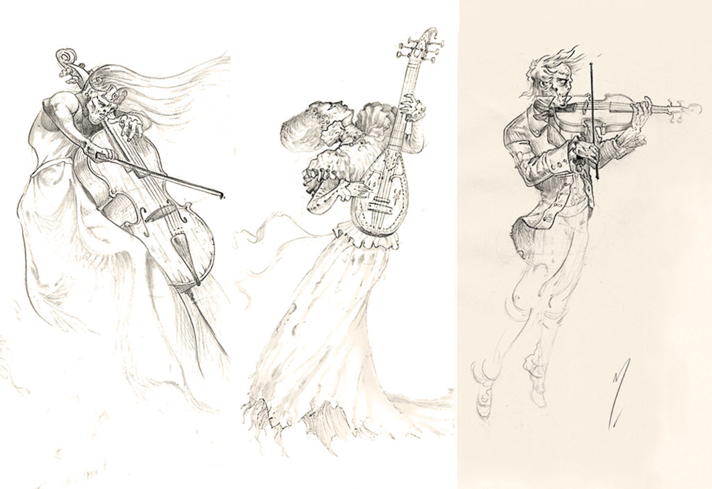 Quería conseguir un efecto grabado, a la manera de Goya y Rembrandt. Experimenté con la plumilla y me conecté con el acabado romántico resultante.