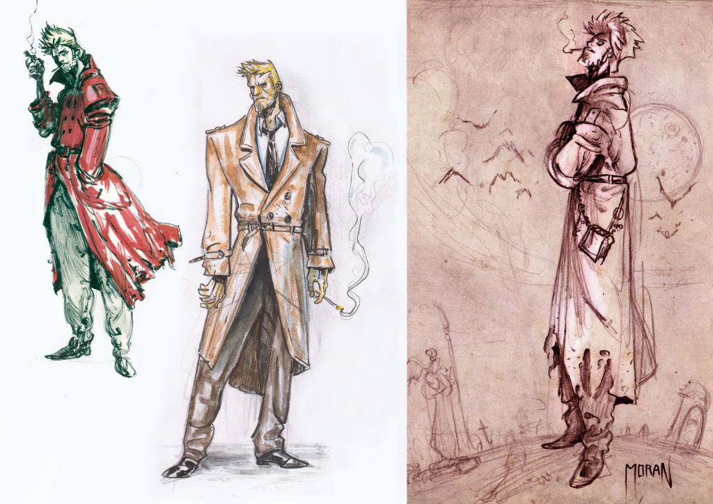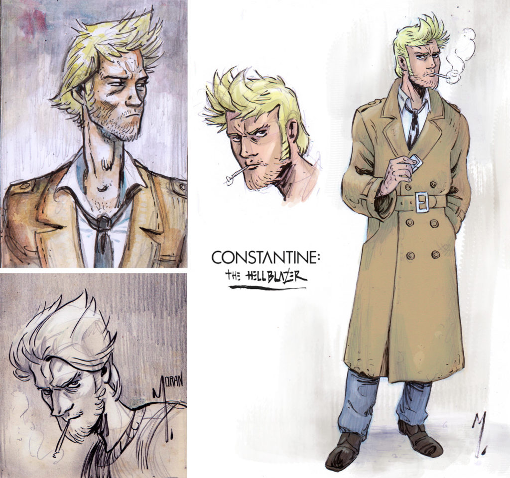 En ‘Red walls of London’ he explorado varios conceptos para el desarrollo visual de los personajes. A Constantine lo imaginé con diferentes looks; primero diseñé para él un traje carcomido, hecho trizas. Luego me dediqué a dar un toque más ‘años 80’ a su pelo y, desde el principio, lo visualizé con una barba desaliñada.
