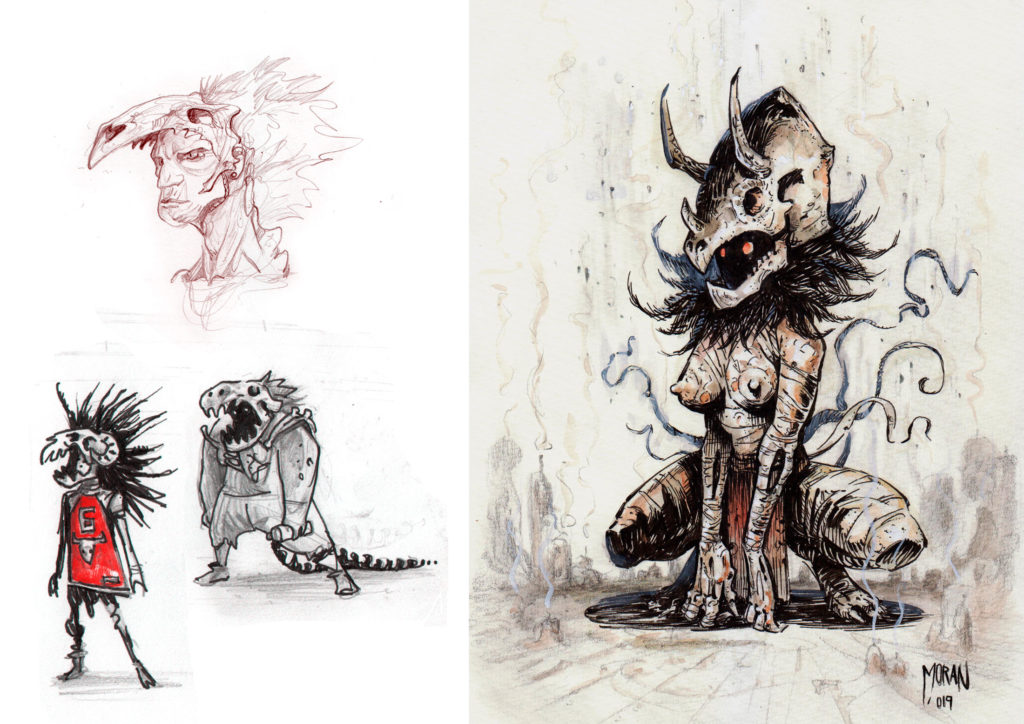 Para la creación de los monstruos me inspiré en la mitología de antiguas civilizaciones. El hecho de que la malvada sea una momia se relaciona con este interés por el mundo arcaico.